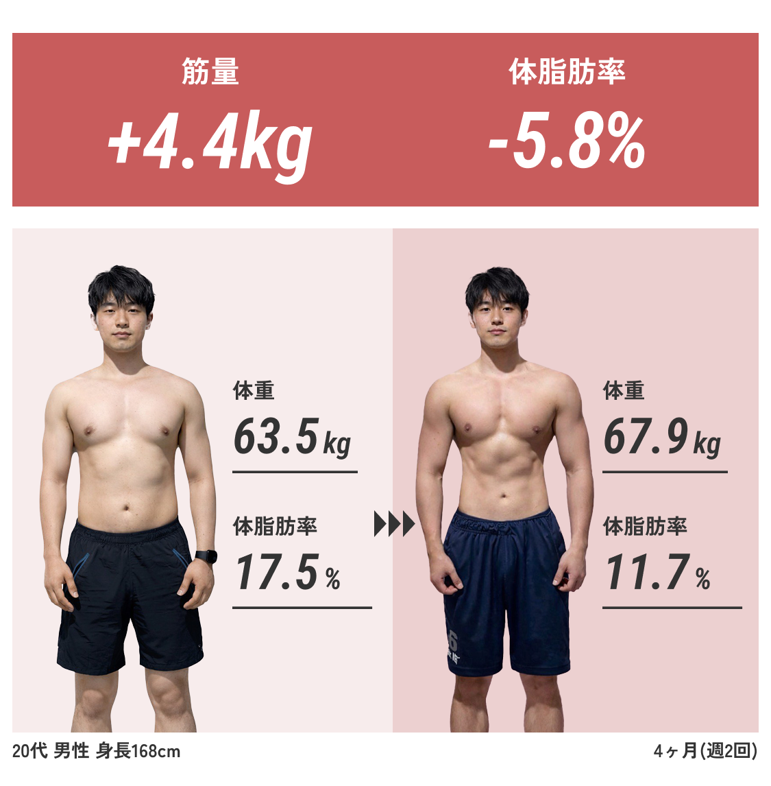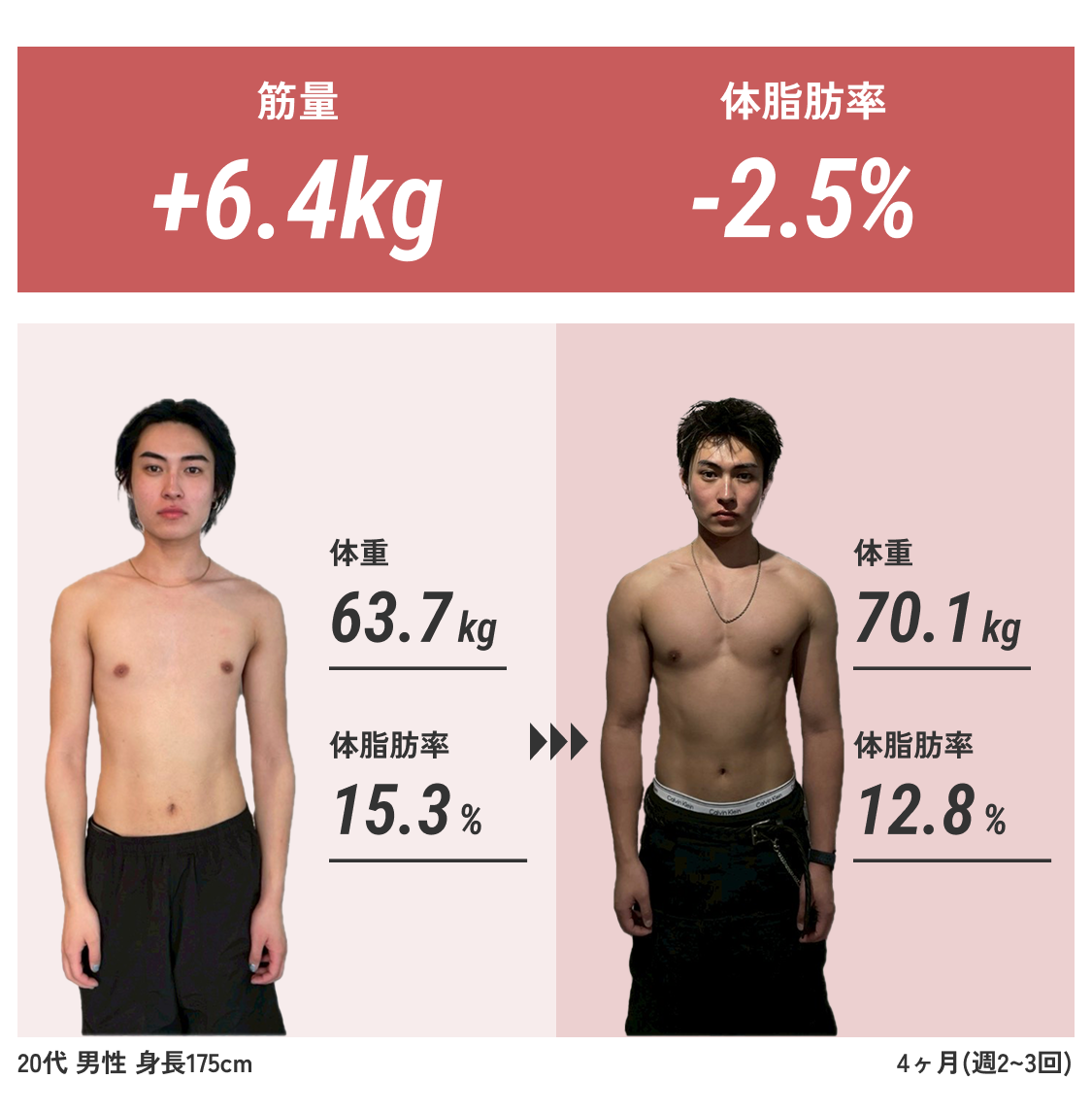 筋トレの最大効率化が図ります。 代謝量増加で他社より早くダイエットもボディメイクを実現します。